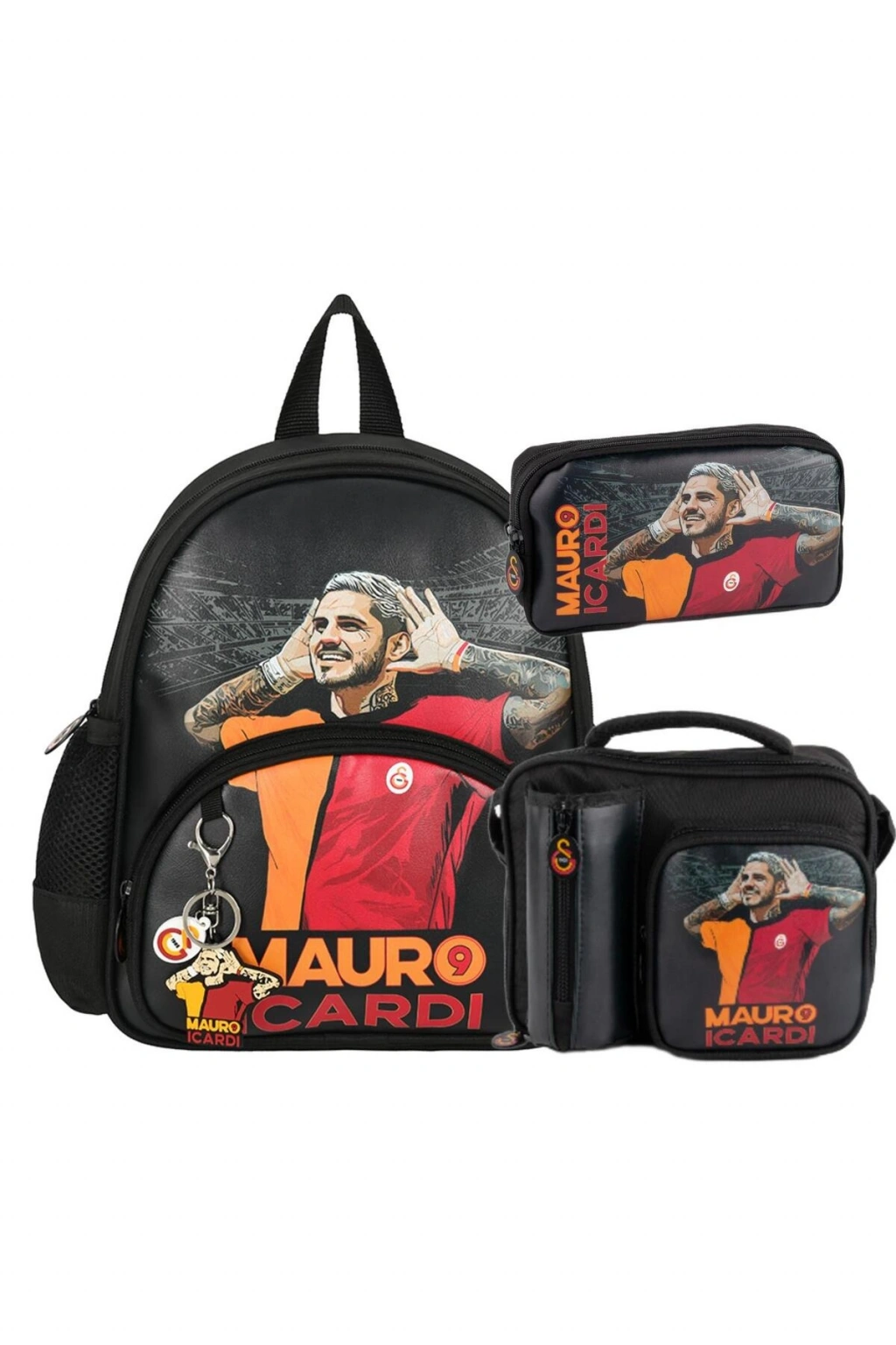 2 Bölmeli Mauro Icardi Suni Deri Anaokulu Çantası + Beslenme Çantası + Kalemlik