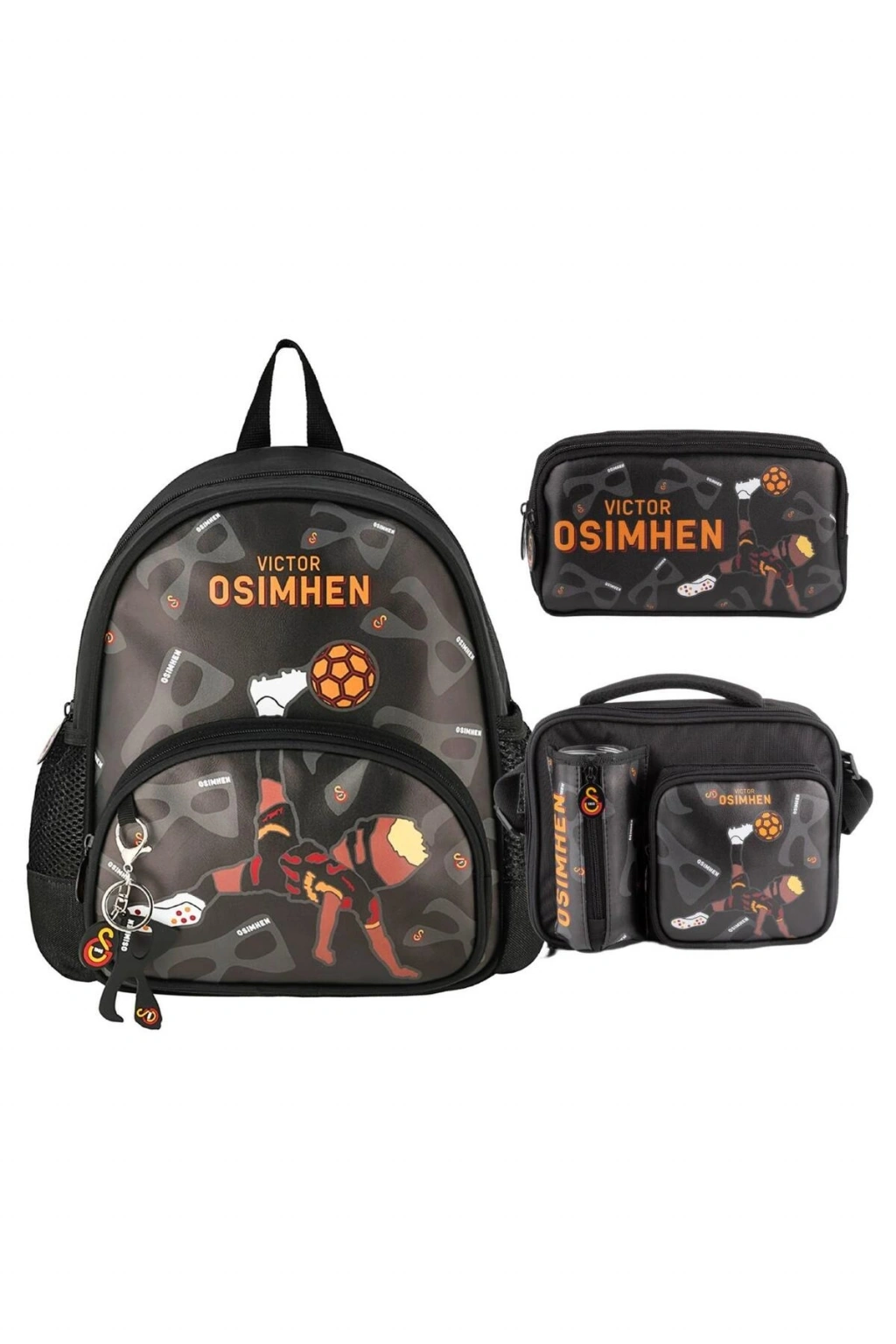 2 Bölmeli Victor Osimhen Suni Deri Anaokulu Çantası + Beslenme Çantası + Kalemlik