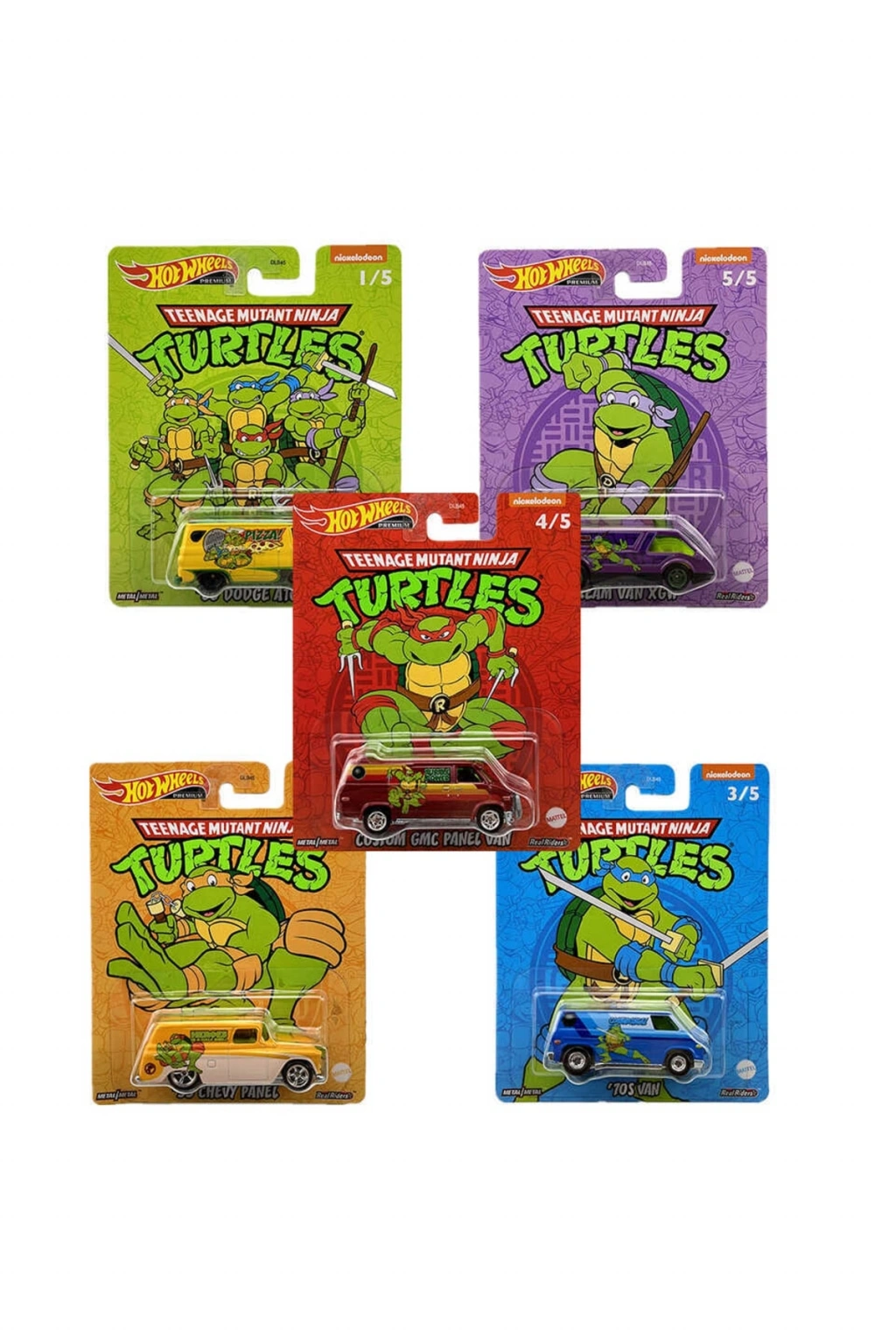 Hot Wheels markasının 5 farklı modelden oluşan Ninja Turtles serisidir.Modeller : HW CUSTOM FORD TRANSIT HW 66 DODGE A100 HW MBK VAN HW 55 CHEVY PANEL HW 70'S VAN. ; Kendimarka mağazamızda bulunan Diğer modellere göz atmayı unutmayın. ; Yaklaşık 8 cm. ; uzunluğunda 1:64 ölçekli olan bu araçlar ile çocuklar oyunlar oynarken aynı zamanda da bu arabaların koleksiyonlarını yapabilecekler! Birbirinden farklı Hot Wheels arabasından oluşan özel set ile koleksiyonunuzu geliştirin, yarışlarınıza heyecan katın. ; Bu heyecan dolu Hot Wheels yarışlarında daha çok araba daha çok eğlence demek!;