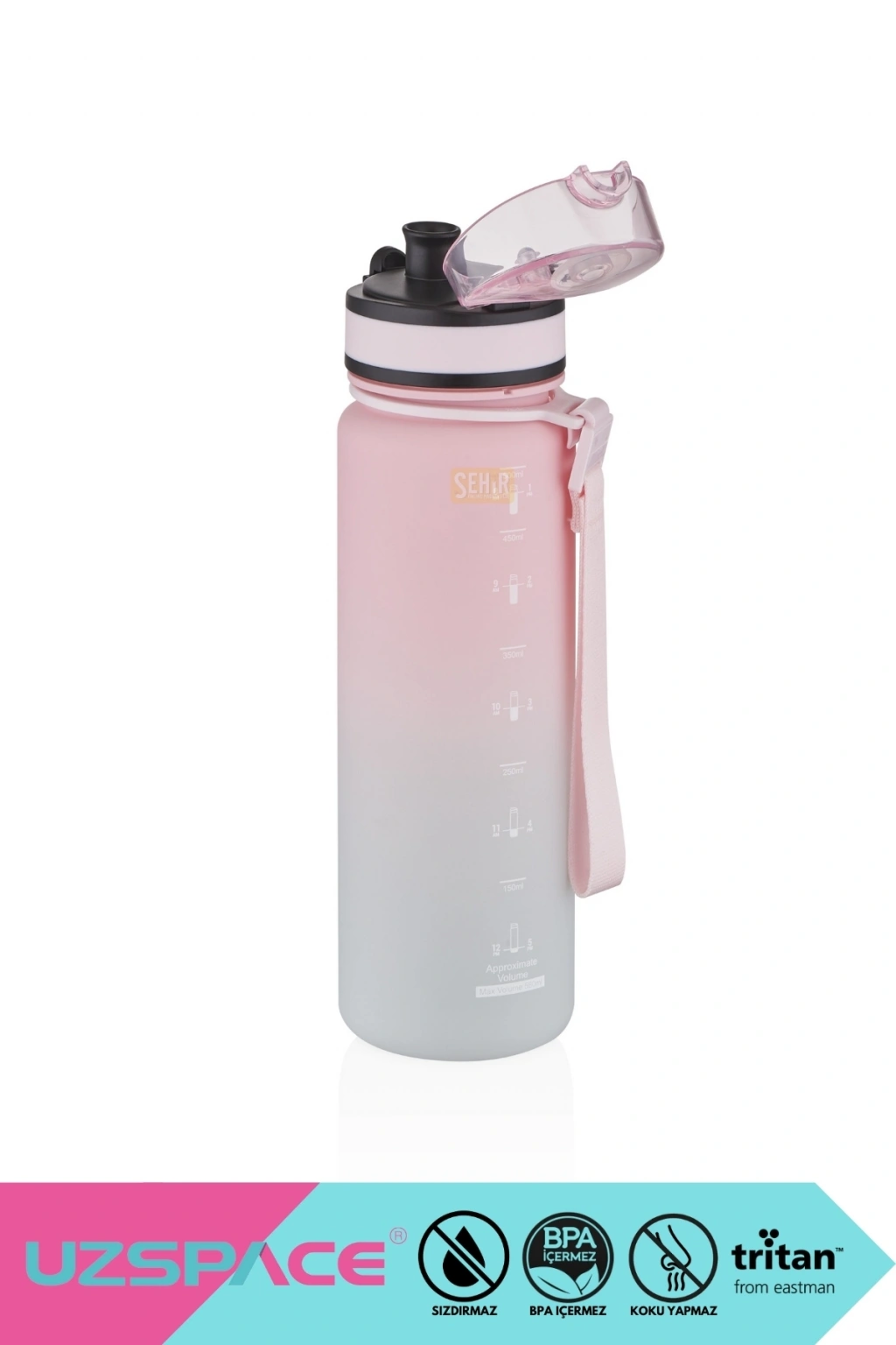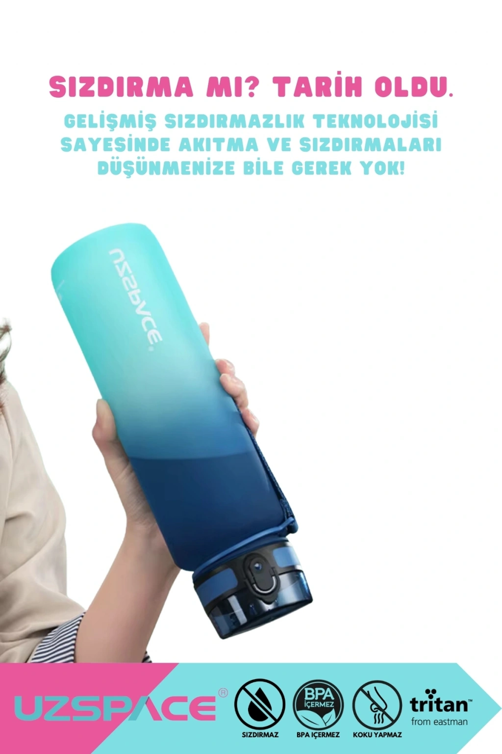 650ml Yeni Çift Renkli Sızdırmaz BPA İçermez Kilitlenebilir Kapaklı Motivasyonel Tritan Su Matarası