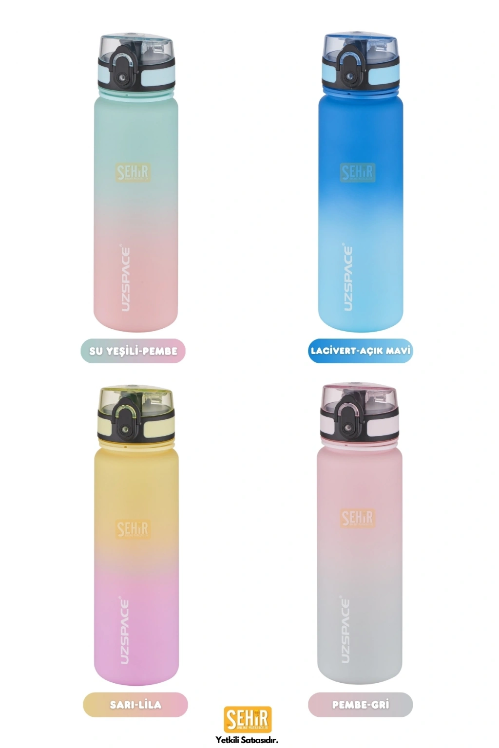 1000ml Yeni Çift Renkli Sızdırmaz BPA İçermez Kilitlenebilir Kapaklı Motivasyonel Tritan Su Matarası