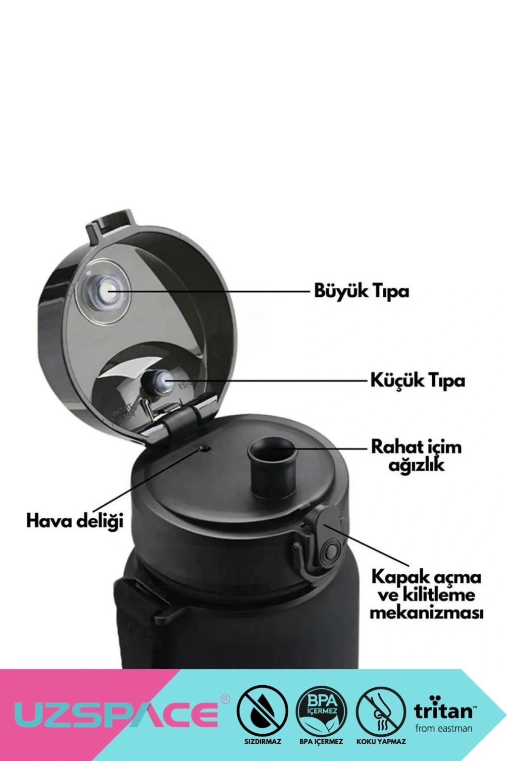 1000ml Yeni Çift Renkli Sızdırmaz BPA İçermez Kilitlenebilir Kapaklı Motivasyonel Tritan Su Matarası