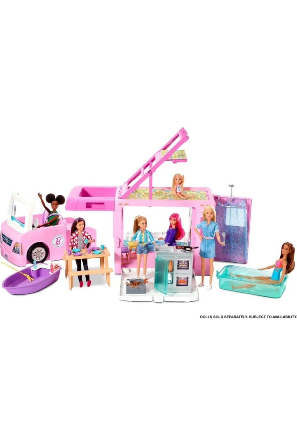 Barbie'nin 3'ü Bir Arada Muhteşem Karavanı Ve Aksesuarları Havuz Kamyonet Tekne Ve 50 Aksesuarlı Ara