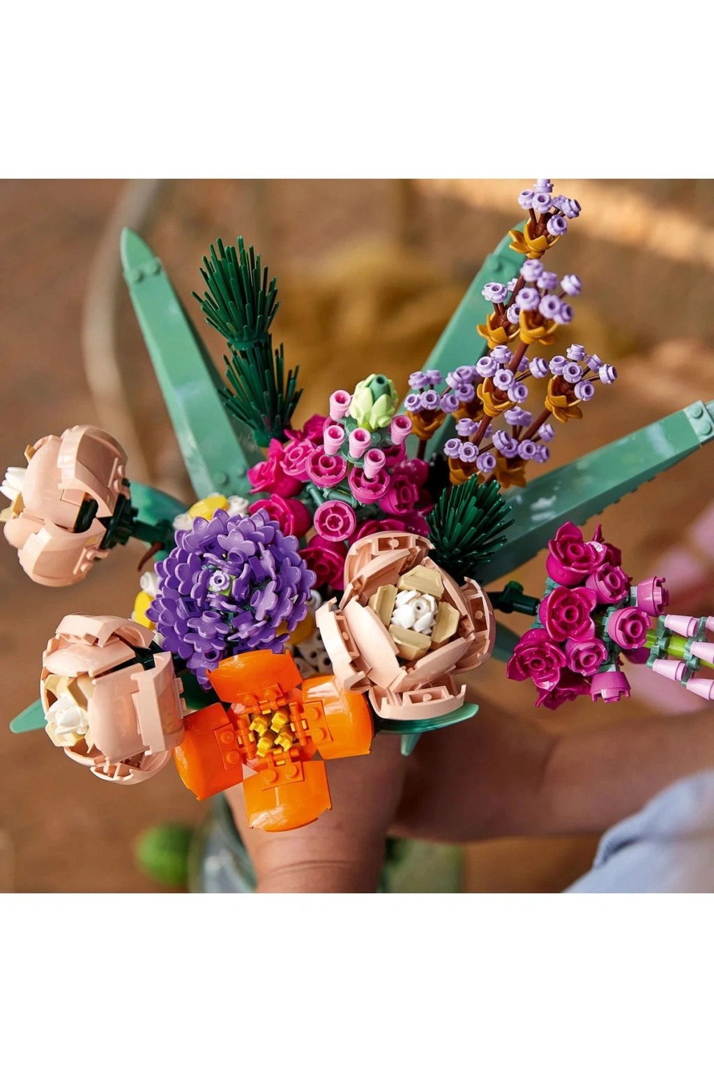 LEGO® Botanicals Çiçek Buketi 10280 - Yetişkinler İçin Koleksiyonluk Dekoratif Çiçek Model Yapım Seti (756 Parça);LEGO® Botanicals Çiçek Buketi (10280) ile evinize doğadan ilham alan zarif bir dokunuş katın. Bu LEGO® yapay çiçek model yapım seti, gül, aslanağzı, papatya, aster çiçeği ve daha birçok çiçek türünü içeren 15 saplı, gerçekçi görünümlü bir çiçek buketi oluşturmanızı sağlar.;Gerçek çiçeklerin estetiğini LEGO® parçalarıyla birleştiren bu LEGO® çiçek model yapım seti, tamamen bitki bazlı plastikten üretilmiş sürdürülebilir bir tasarıma sahiptir. Ayarlanabilir sap uzunlukları ve hareket ettirilebilir yaprakları sayesinde buketinizi dilediğiniz şekilde şekillendirebilirsiniz.;Solmayan bu yapay çiçek buketi, Sevgililer Günü, Anneler Günü, doğum günü ya da özel bir yıldönümü için mükemmel bir hediye fikridir. Aynı zamanda dekoratif bir obje olarak da her ortama zarafet katar.;LEGO® Botanicals koleksiyonunun en özel parçalarından biri olan bu set, doğayı seven yetişkinler için hem rahatlatıcı hem de yaratıcı bir hobi deneyimi sunar. Gerçekçi detaylar, canlı renkler ve modüler yapı ile kendi çiçek aranjmanınızı oluşturmanın keyfini çıkarın.;756 parçadan oluşan bu LEGO® çiçek model yapım seti, gerçek bir çiçek buketi kadar etkileyici, ama asla solmayan kalıcı bir güzelliğe sahiptir.