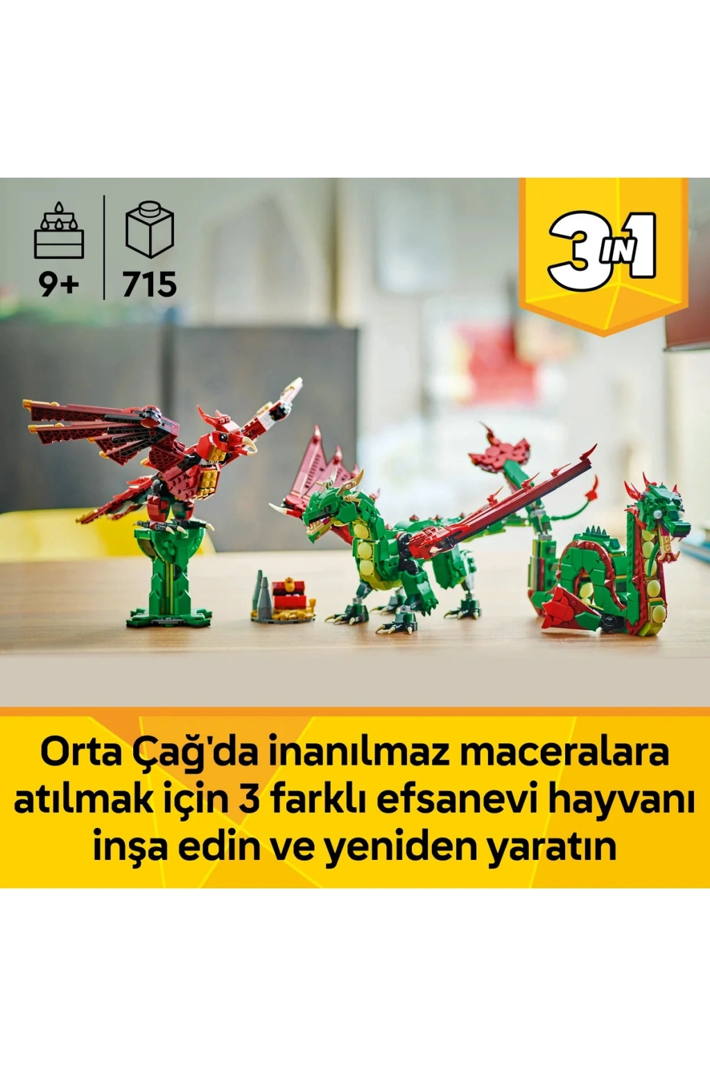 ® Creator 3’ü 1 Arada Orta Çağ Ejderhası 31161 - 9+ Yaratıcı Oyuncak Yapım Seti (715Parça)