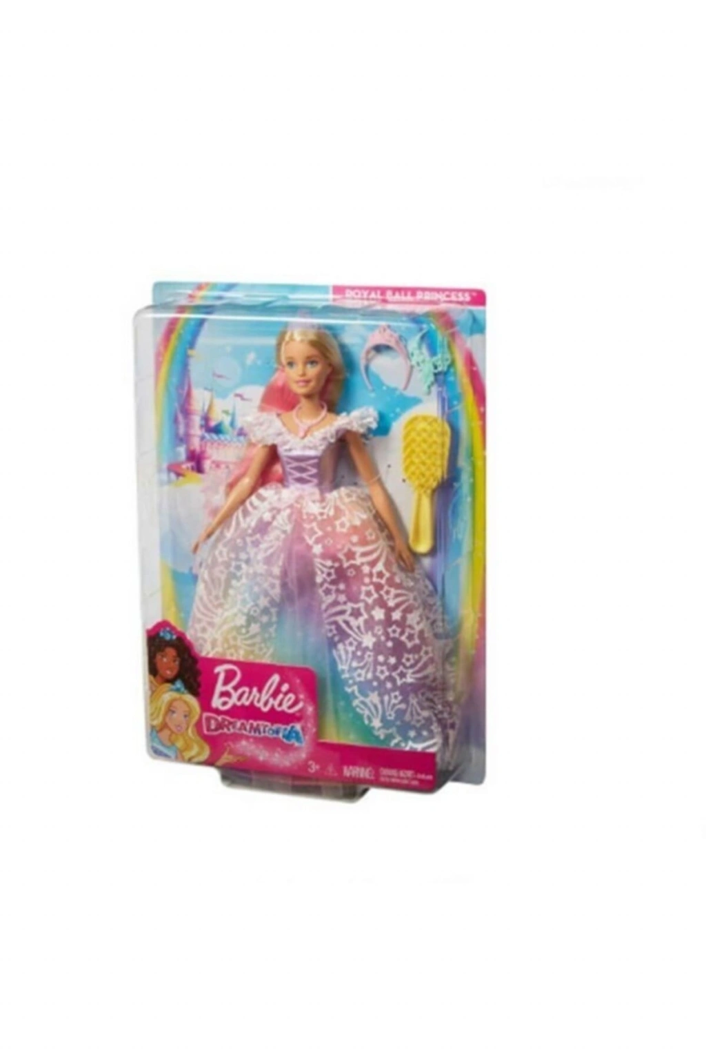 Barbie Dreamtopia Güzel Balo Prensesi Barbie Dreamtopia Güzel Balo Prensesi ile Dreamtopia’yı keşfedin ve gerçek bir prenses gibi hissedin! Barbie Dreamtopia bebeği ışıltılı gökkuşağı balo elbisesi, prenses ayakkabıları Pembe saçları ve peri aksesuarları ile adeta bir yıldız gibi parıldıyor. Barbie prenses bebek, gökkuşağından esinlenilmiş pembe saçları ile de görünümüne daha fazla renk katıyor. Barbie omuzu fırfır detaylı ve gökkuşağının renklerini barından bu tül elbisesi ile balonun en güzeli olmaya hazır! Set içerisinde; 1 adet Barbie prenses bebek, 1 adat tarak, prenses tacı, değnek ve kolye yer almaktadır. Yaş Grubu : 3+ Yaş Barkodu: 887961768350 Item No : MATE-GFR45 Kutu Ölçüleri : 6,5 x 23 x 33 cm. Desi Değeri: 2