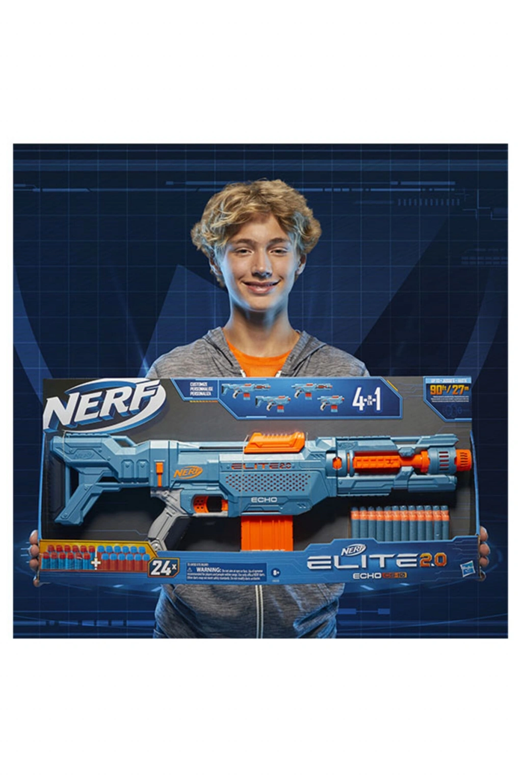 Nerf Elite 2.0 Echo CS 10 E9533 Nerf Elite 2.0 dart tabancaları ile oyun stratejinizi geliştirin, kapışmalarda avantaj ve esneklik sizde olsun! Bu dart tabancaları her türlü görev ve kapışma için modifiye edilebiliyor; Nerf ustalarına taktik üstünlük sağlıyor. Nerf Elite 2.0 Echo CS-10, kutuya dahil takılıp çıkarılabilen dipçik ve namlu uzatma parçasıyla modifiye edilebiliyor. Üzerindeki 4 taktik aksesuar rayına diğer Nerf kapışma aksesuarları (kutuya dahil değildir) eklenebiliyor. Dart tabancasına 10 dart alan şarjör takılabiliyor. Dartlar ister her seferinde birer birer, ister seri olarak art arda atılabiliyor. 27 metre atış mesafesine sahip Echo CS-10'nun paketine 24 orijinal Nerf dart dahil. Şarjöre 10 dart doldurun ve tekrar doldurmak için kalanı yakınınızda tutun. Pile gerek yoktur. Gözlük takılması önerilir (kutuya dahil değildir). İçindekiler: dart tabancası (takılıp çıkarılabilen dipçik, namlu uzatma parçası ve 10 dart alan şarjör), 24 dart ve kullanma kılavuzu. GELİŞTİRİLMEYE HAZIR DART TABANCASI: Takıp çıkarılabilen dipçik ve namlu uzatma parçası ile 4 taktik aksesuar rayı sayesinde dart tabancasını her kapışma veya görev için özel hâle getirin. 24 NERF DART İÇERİR: Echo CS-10'un paketine 24 orijinal Nerf dart dahil. Bunların 10’u şarjörü tamamen doldurmak, diğer 14’ünü ise şarjörü tekrar doldurmak için kullanın. SERİ ATIŞ: Sürgüyü geri ileri hareket ettirin ve tetiğe basarak 1 dart atın. Seri atışla 10 dartın tümünü fırlatmak için tetiği basılı tutun ve sürgüyü hareket ettirmeye devam edin. ATIŞ MESAFESİ 27 METRE: 27 metre atış mesafeli bu dart tabancasıyla mesafeleri alt üst edin. 8 yaş ve üzeri içindir.