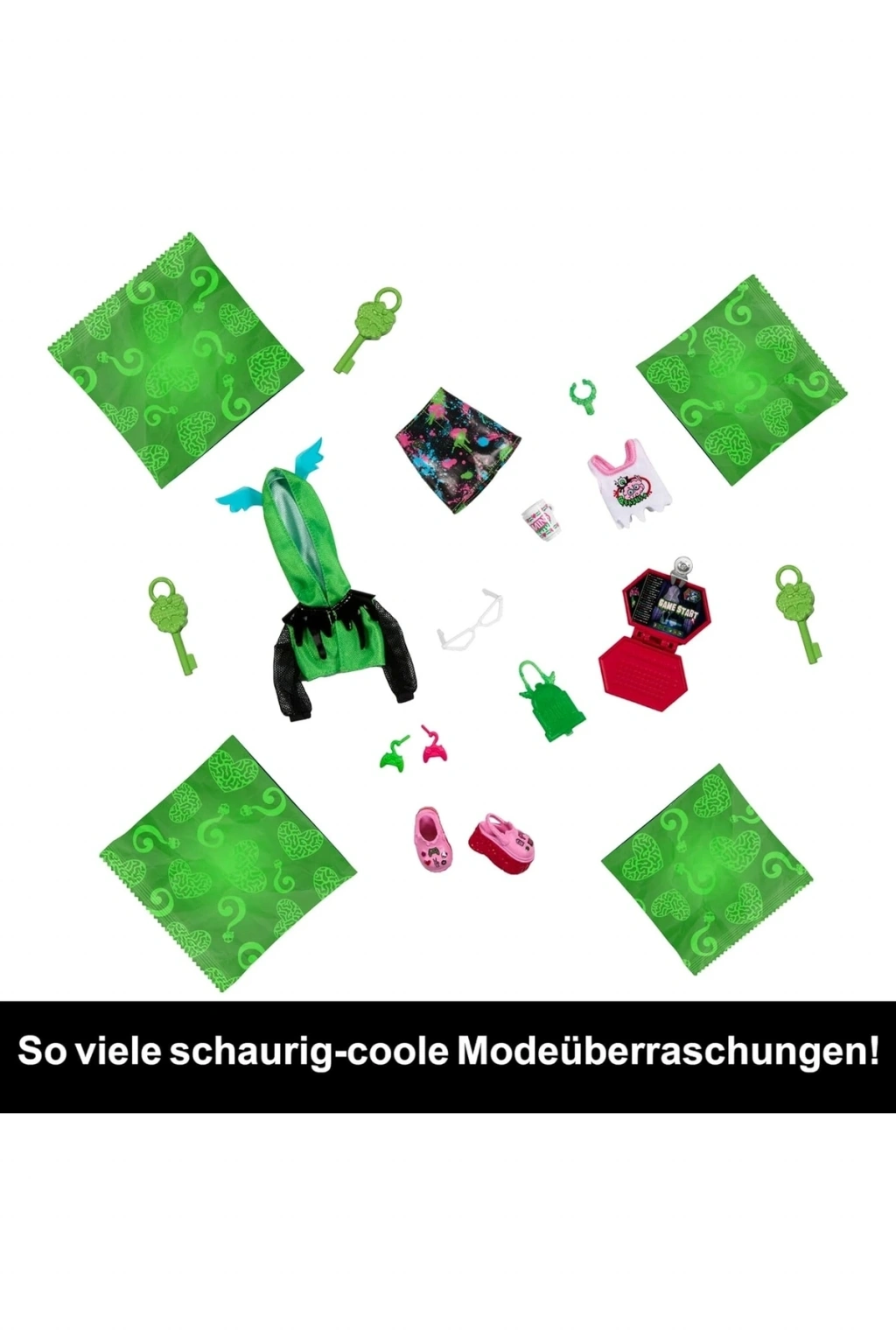 Monster High, Neon Frights sürümüyle geri dönüyor ve bu sefer floresan renkte! Elektrik rengindeki her set, bir Monster High bebeği ve karanlıkta parlayan üç aksesuar dahil 19'dan fazla sürprizle birlikte gelir.; Renk Gösterimi büyüsü ve adım adım açılış, muhteşem bir kutu açma deneyimi sağlarken tabut şeklindeki dolap, hikaye anlatımı ve depolama için mükemmeldir.; Moda sürprizleri ve fantastik aksesuarlar gibi Neon Korkuları keşfetmek için Ghoulia bebeğinin dolabını açın.; Bir sırrı gizleyebilir misiniz Dört Renk Gösterimi anahtarını alın ve gizemli kaplamalarını yıkayın, ardından içlerine saklanan gizli eşyaları bulmak için eşleşen dört bölmenin kilidini açın.; Karanlıkta parlayan üç aksesuarı keşfetmek için ışıkları kapatın! En karanlık geceleri bile aydınlatacak kıyafetler yaratmak için bunları birlikte verilen diğer stil parçalarıyla karıştırıp eşleştirin.; Ghoulia bebeği, cesur pembe vurguları ve makyajıyla kendini ifade ediyor.; Kolay saklama ve hareket halindeyken taşınabilirlik için onu ve tüm Neon Korkularını tabut şeklindeki dolabın içine koyun.; Rahat bir kapüşonlu üst ve çikolatalı atıştırmalıklardan bir dizüstü bilgisayar ve yüz maskesine kadar Skulltimate Secrets Ghoulia, hayal gücünü harekete geçirmek için 19'dan fazla parlak renkli sürprizle birlikte geliyor.; Ona 125'ten fazla görünümle stil ver! Ürün Boyutu: 12,75(Y) x 8,5(G) x 2,63(D) Yaş Grubu: 4 +