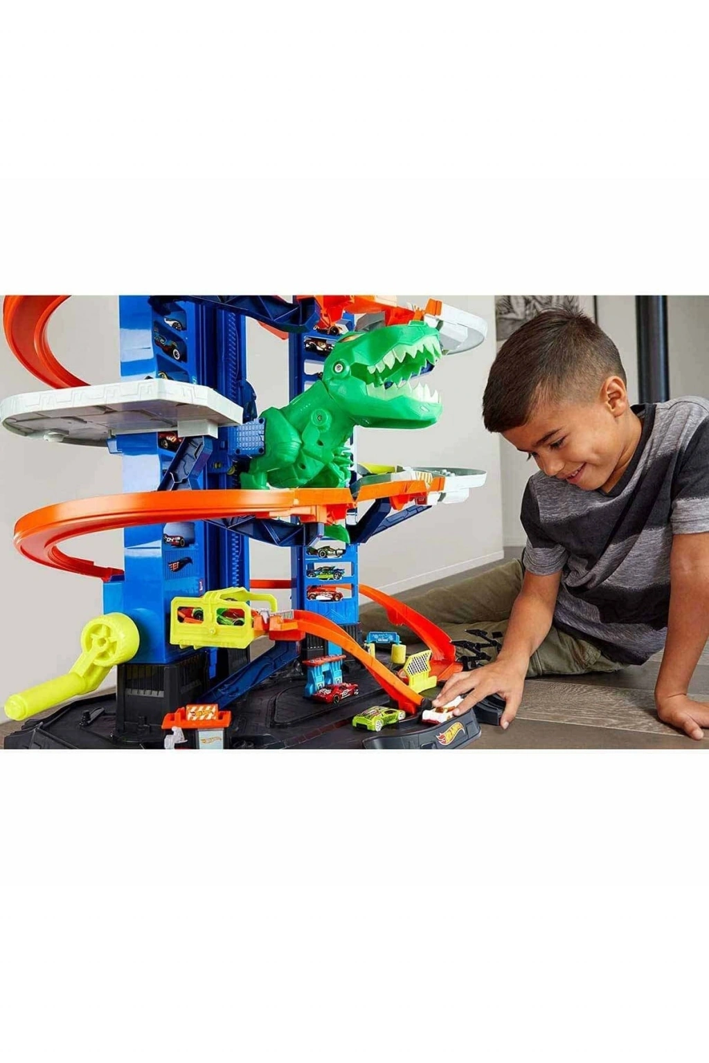 Hot Wheels Robotik T-Rex Ultimate Garaj GJL14 Hot Wheels’in yeni ürünü olan en UZUN Mega Garaj, sonsuz sayıda hikaye ve araçlı aksiyon oyunlarıyla MEGA maceralar sunuyor! Karnı acıkan Robot T-Rex'in gözü leziz Hot Wheels araçlarında! 100'den fazla araç için park yeri bulunan bu devasa oyun seti, çocukların hayal gücünü harekete geçiren düşman Robot T-Rex sürpriziyle geliyor! Kendilerinin çalıştırabileceği iki araçlık asansörle çocuklar, araçlarını en üst kata çıkarıyor. ; Çocuklar, çok katlı garajda yarışarak çok oyunculu modu deneyip heyecana hız kesmeden devam ediyor. ; Diğer Hot Wheels setlerine (ayrı olarak satılır) bağlanabilir ve 2 Hot Wheels 1:64 ölçekli araç ile Hot Wheels ID aksiyon özelliği de içerir! Hot Wheels ID Portal'ı (ayrı olarak satılır) takarak daha fazla oyun deneyiminin kapılarını arala: Aracını tanıt, rakiplerinle yarış, Robot T-Rex'ten kaç ve kazan! Büyük hava atlayışları yapıp yokuş aşağı hızlanarak heyecanı doruklarında yaşamak için park kulesinin tepesindeki yan yana yarış pistinden aşağı kay. ; Kutuda ne var? Hareket eden bir adet Robot T-Rex ile bir adet Hot Wheels Şehri Mega Garajı ve 100'den fazla metal araç için park yeri. ; 2 adet Hot Wheels 1:64 ölçekli araç yer almaktadır. ; Yaş Grubu : 5+ Yaş Barkodu: 887961813425 Item No : MATE-GJL14 Kutu Ölçüleri : 60,9 x 16,5 x 76,2 cm. ; Desi Değeri: 26;