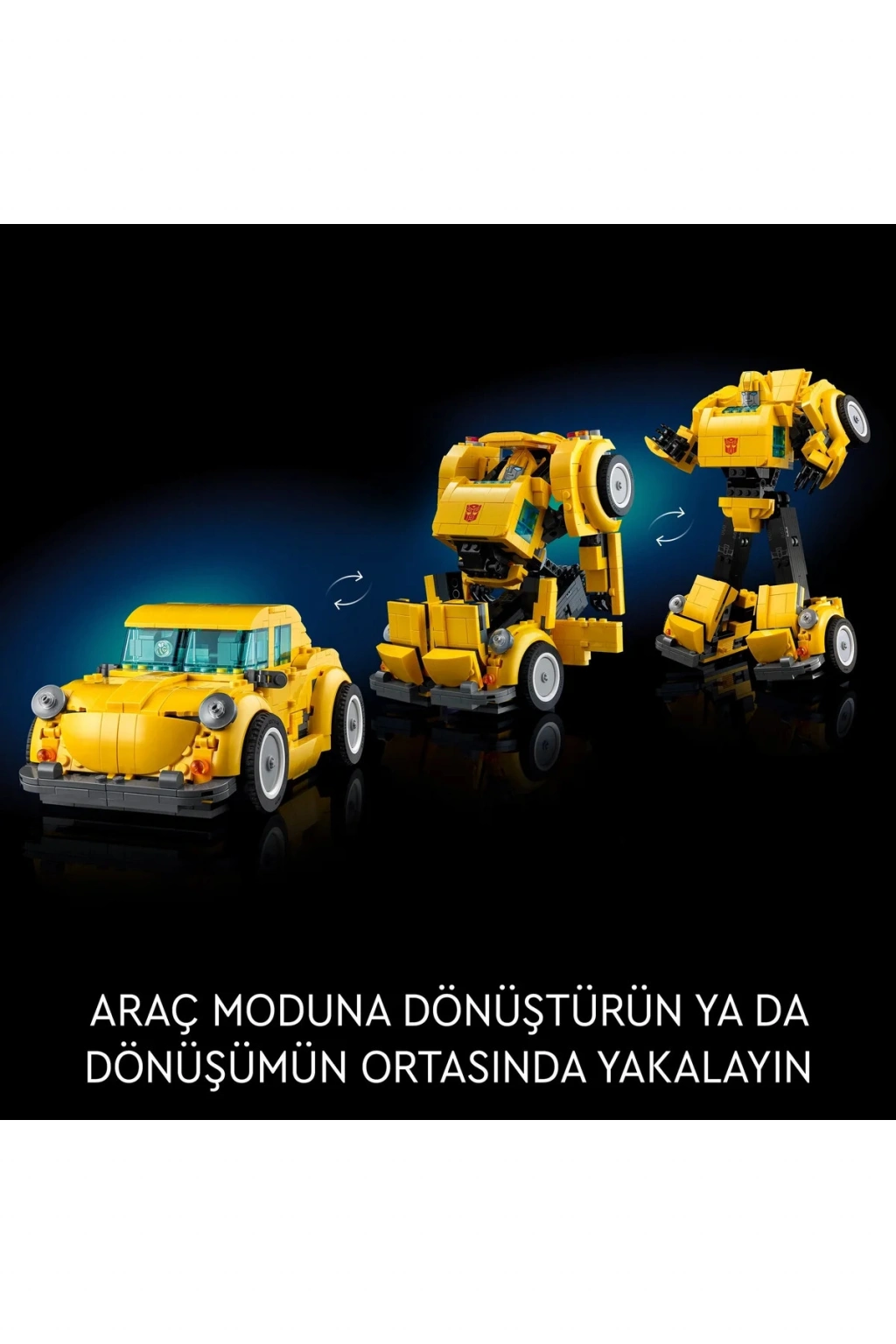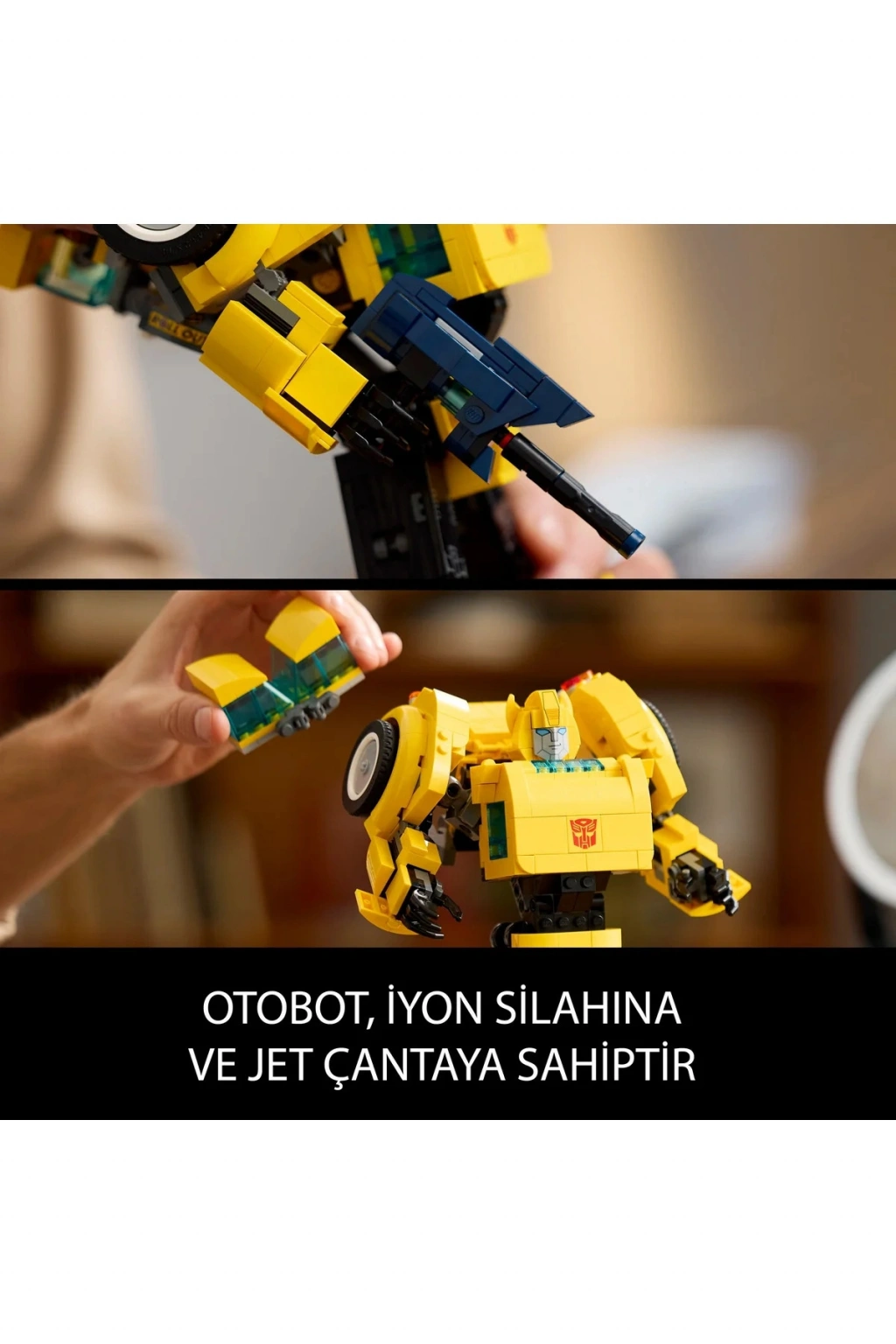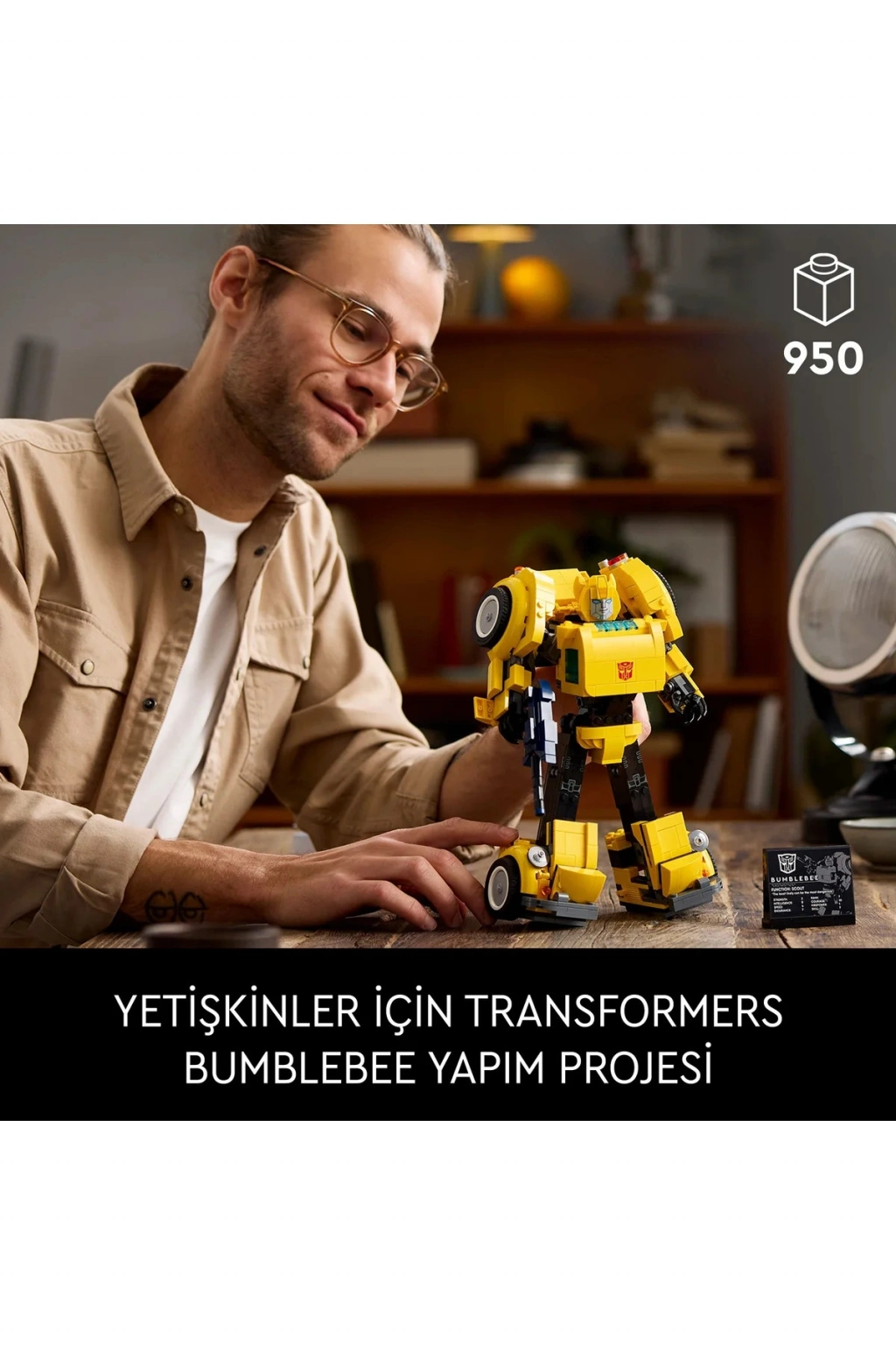 Yetişkinler için LEGO® Icons Transformers Bumblebee (10338) yapım projesiyle Transformers evrenine olan tutkunuzu yeniden alevlendirin. Otobot’tan araç moduna dönüşen 1980'lerin ünlü robot aksiyon figürünün son derece detaylı bir modelini inşa edin. Otobot’un oynak eklemleri, iyon silahı ve jet çantası bulunur. Güç istatistiklerini belirten bir sergileme levhası, bu büyüleyici modele son dokunuşu katar. LEGO Builder uygulaması, bu Transformers Bumblebee setiyle birlikte gelen yapım talimatlarının dijital bir versiyonunu içerir. Burada modelinizi 3 boyutlu yakınlaştırabilir ve döndürebilir, ilerlemenizi takip edip kaydedebilir ve yeni yapım setlerini keşfedebilirsiniz. Bu set, kendiniz için sürükleyici bir proje ya da koleksiyonluk Transformers modellerini seven herkes için harika bir hediye fikridir. Yetişkinler için özel olarak tasarlanmış ilham verici LEGO yapım setleriyle bir rahatlama alanını keşfedin.