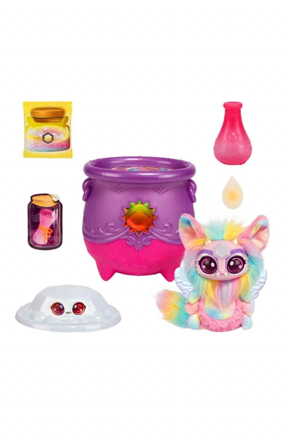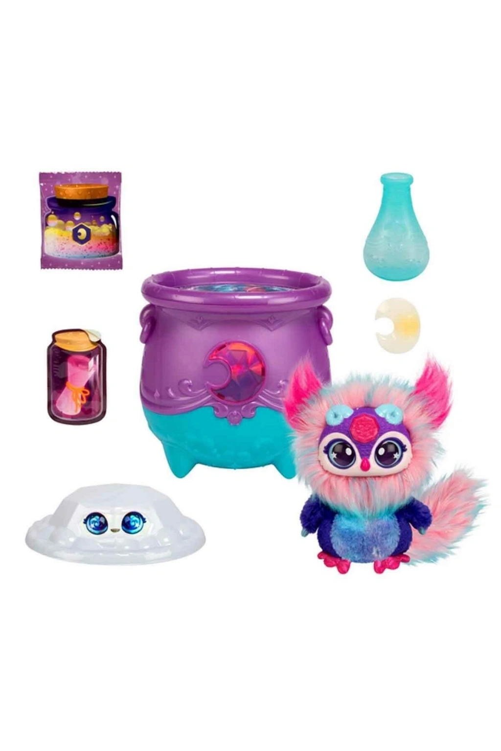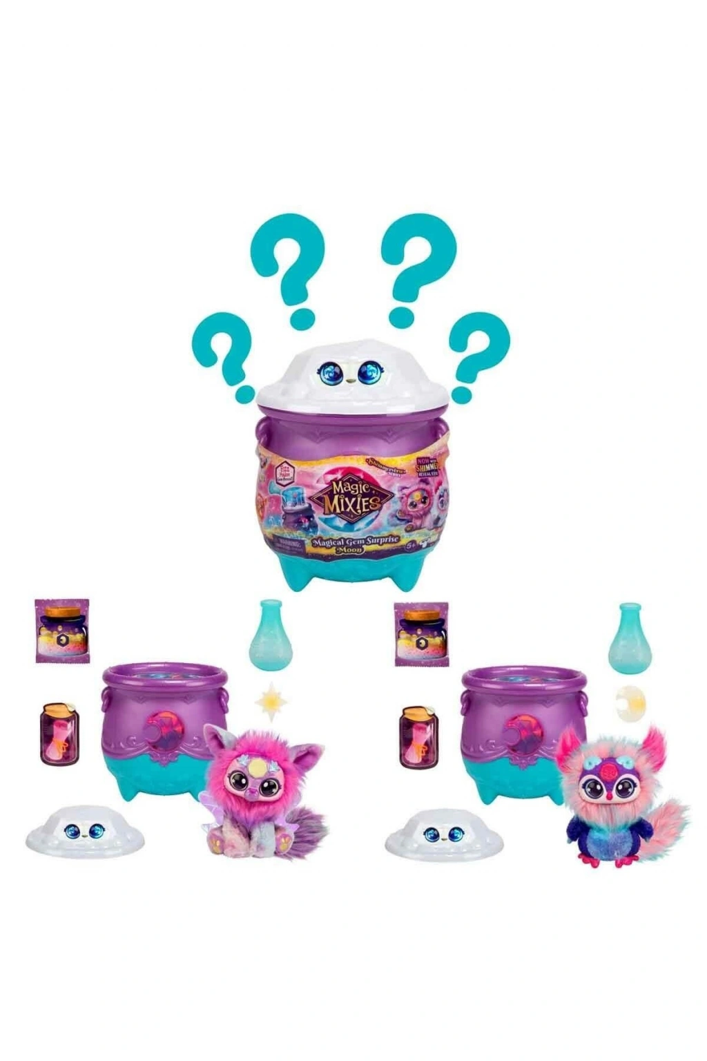 Pırıltı Evreni’yle tanışma zamanı! Çocuklara gerçek sihir deneyimi yaşatan Magic Mixies’den GemSihirli Kazan sürprizi!Çocuklar elementleri keşfederek farklı Mixie Peluşlarını veSihirli Yüzükleri ortaya çıkarırken çok eğlenecekler! Sihirli Toz, Kazan’a döküldükten sonra İsim Parşömeni’neçocuklar istedikleri ismi yazıyorlar ve onu da Kazan’a ekliyorlar.; Pakette yer alan Sihirli Asa’yı kullanarak biraz suekledikten sonra sihir başlıyor: Karışım baloncuklanıyor, köpürüyor ve mücevherbeliriyor! Mücevherin içinde renk değiştiren Sihirli Yüzük ileElemental Sihirli Mixie Peluş çocukları bekliyor! Biriktirmek ve ortaya çıkarmak için Seri 4’te Güneş ve Ayolmak üzere 2 farklı kazan, 4 farklı peluş var! Üstelik yeni serideki Mixie’lerin gözleri Pırıltı Evreni’ninışıltılarıyla dolu!5 yaş ve üzeri çocuklar için uygundur.