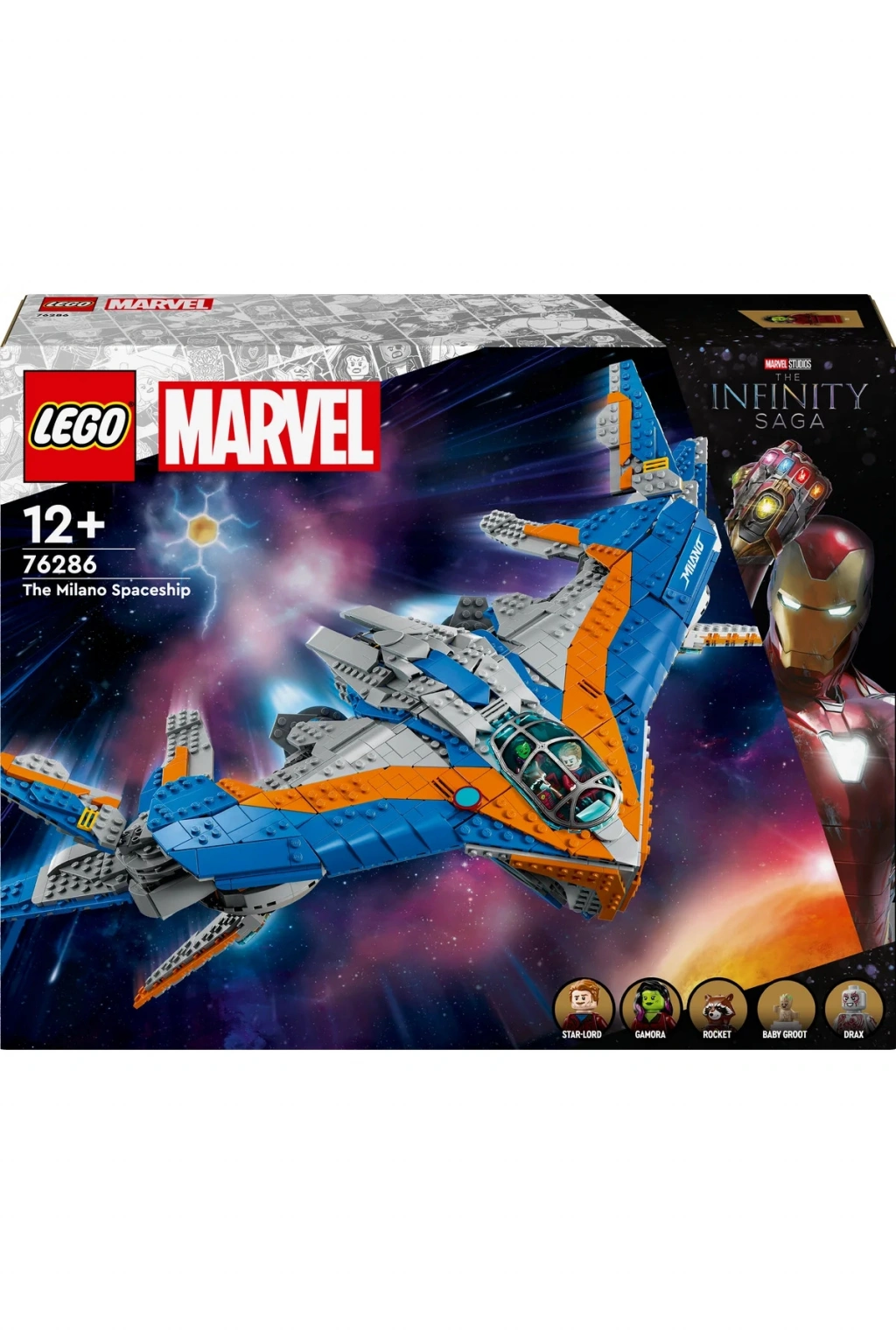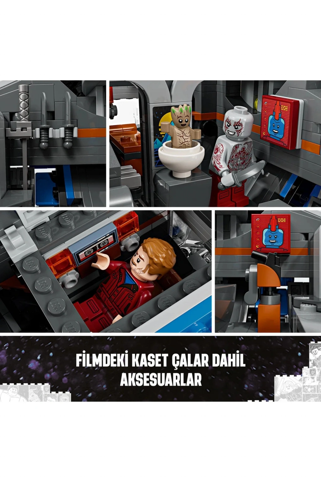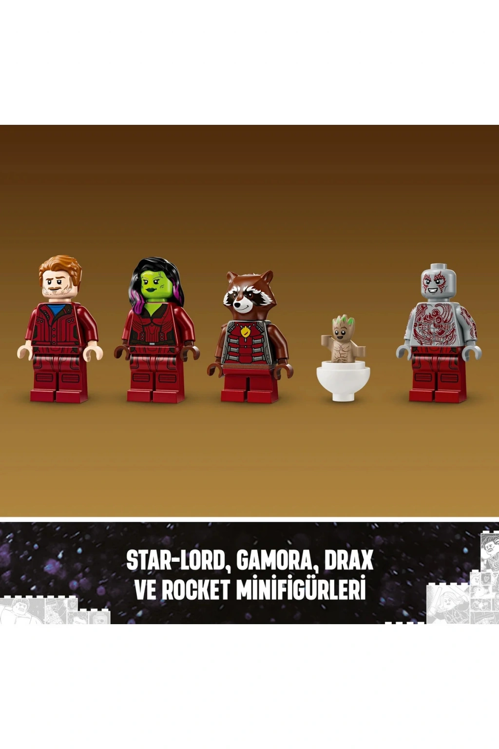 Galaksinin Koruyucuları Milano uzay gemisinde uzayda hızla yol alın! 6 ayarlanabilir kanadı, 4 hareket edebilen arka iticisi ve uçuş güvertesinde Star-Lord, Gamora ve Rocket ile heyecan verici bir yolculuk olacak! Uzay gemisinin arkasında Drax ve Bebek Groot, dinlenme alanında sallanan bir kaset çalarla keyif çatıyor çünkü her kahramanın harika bir soundtrack’e ihtiyacı vardır!