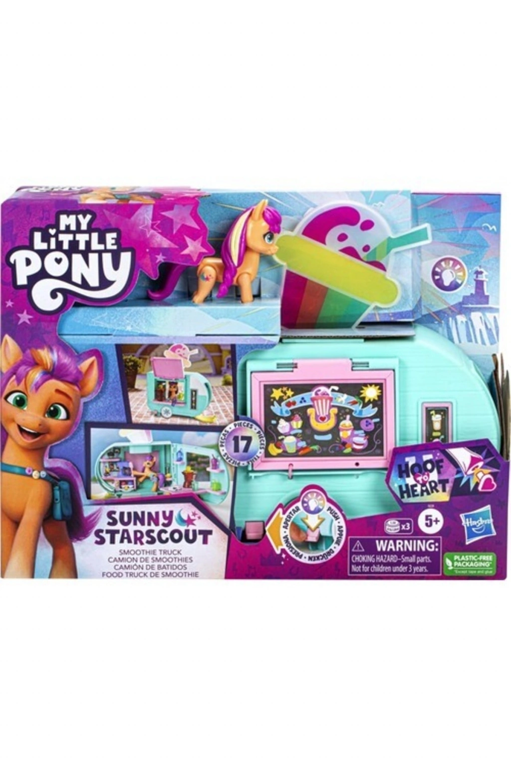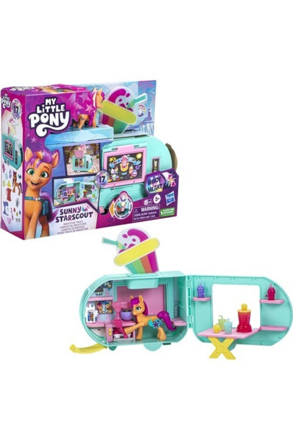 My Little Pony Sunny Starscout Smoothie Arabası F6339 Sunny Starscout Smoothie Kamyonu ikisi bir arada My Little Pony oyun seti ile sihirli yemekler yapın; Sunny, My Little Pony: Make Your Mark dizisinde smoothie kamyonuyla gezip tatlı ikramlar hazırlayan maceracı bir Toprak Pony'sidir; My Little Pony setinde, çocukların farklı şekillerde poz verdirebileceği, 7,5 cm boyutunda eklemli Pony figürü bulunur; Çocuklar için yemek kamyonu oyun seti, açıldığında oyuncak yemeklerle dolu bir oyun mutfağına dönüşür; Fırında oyuncak minik pasta veya mikser aksesuarında oyuncak smoothie yapabilirsiniz; Neon lambayı ışıklandırmak ve kamyonun penceresini açmak için bu Sunny Starscout oyuncağının toynağını kamyonun koluna bastırın; Ardından içindeki mutfağı keşfetmek için kamyonu açın; Sunny'nin ayağına takılabilen bazı aksesuarlarla birlikte toplam 15 aksesuar kutuya dahildir; İçindekiler: figür, smoothie kamyonu ve 15 aksesuar; Yaş Grubu : 5+ Yaş Barkodu: 5010996101730 Item No : INT; F6339 Kutu Ölçüleri : 31,5 x 24 x 9 cm; Desi Değeri: 3;