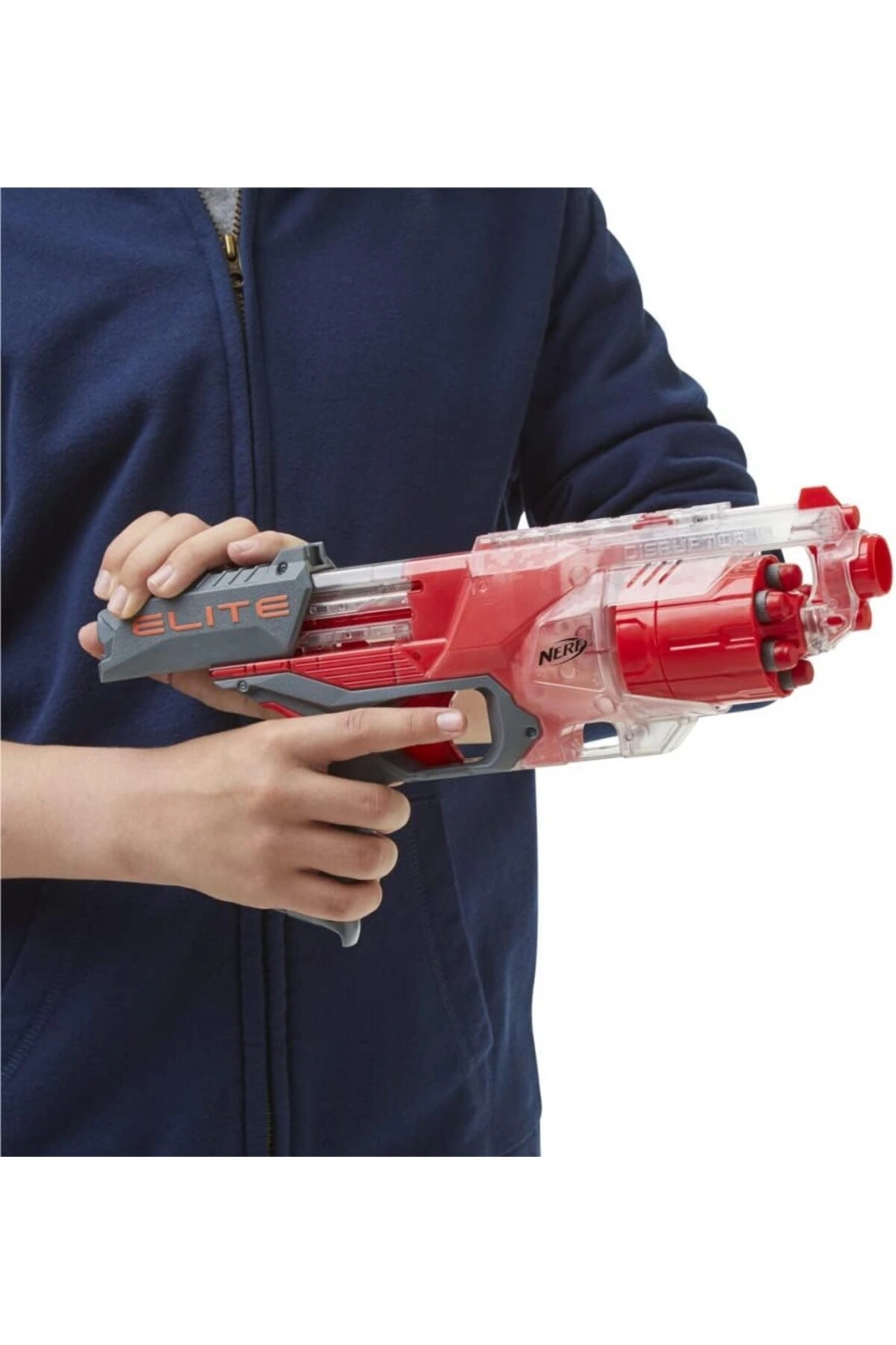 Nerf Elite Disruptor Blaster, 6-Dart Davul, 6 Elite Dart, Hızlı Ateş, Yarı Saydam Kırmızı