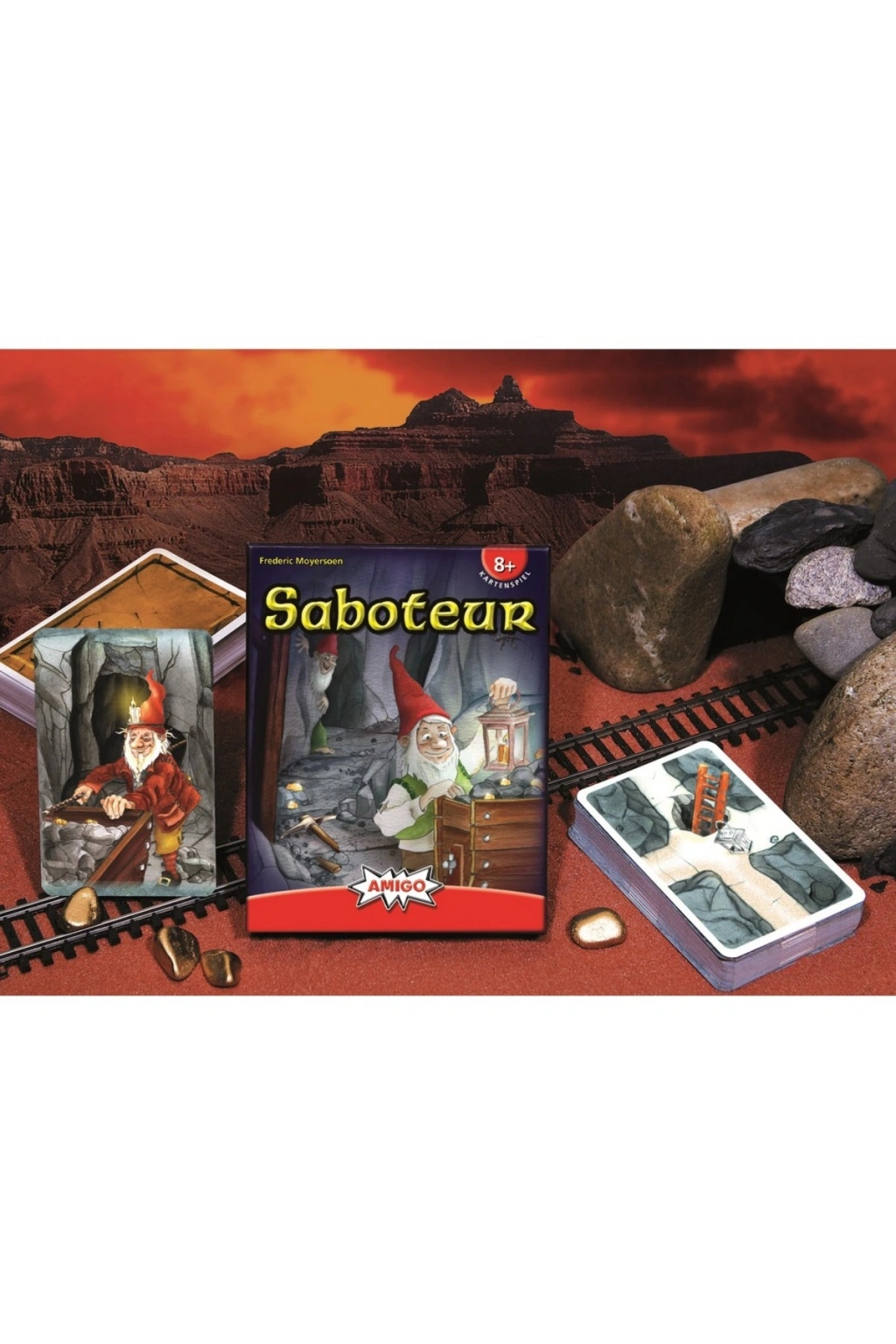 Sonunda kim sabotajcı çıkacak? Altın arayıcısı olarak altın madeni ocağında altın arıyorsun.. Ansızın sivri uçlu kazma kırılır ve her nasılsa madenin ışığını söndürür.. Büyük ihtimalle bir sabotajcı eylemi bu.. Acaba maden ocağında kim olay çıkartmaya çalışıyor? Altın arayıcıları başarılı olabilecekler mi? Yoksa kötü ve karanlık niyetleriyle sabotajcı mı ortalığa hakim olacak? Sonuna kadar heyecan dolu ve gerilimli bir oyun. Oyunu, 3. tur sonunda en çok altın parçalarına sahip olan oyuncu kazanır. Almanya'da üretilmiştir. Beceriler: Strateji geliştirme, mantıksal çıkarım. İçindekiler: • 44 yol kartı • 27 eylem kartı. • 28 puanlama kartı. • 7 altın avcısı kartı. • 4 sabotajcı kartı. • 1 kurallar kitapçığı. Sabotajcı Kart Oyunu Nasıl Oynanır? Bu oyunda oyuncular Cüce rolünü alır; ya hazineyi bulmak için tünellerini dağın daha da derinliklerine kazan Altın Avcısı ya da kazıcıların yollarına engeller koymaya çalışan Sabotajcı olurlar. Her bir grubun üyeleri birbirlerini desteklemelidir, tabii ki daha çok kimin kendi dostu olduğunu yalnızca tahmin ederek. Eğer Altın Avcıları hazineye giden bir yol oluşturmayı başarabilirlerse altın parçaları ile ödüllendirilirler, bu durumda Sabotajcılar avuçlarını yalarlar. Ancak, Altın Avcıları başarılı olamazlarsa ödülü Sabotajcılar toplar. Oyuncular rollerini (Cüce veya Sabotajcı olduklarını) turun sonunda altınlar paylaşılırken açıklarlar. Üç turun sonunda, en çok altın parçası olan oyuncu oyunu kazanır. Oyun matını buradan indirebilirsiniz. Yaş Grubu: 8+ Yaş