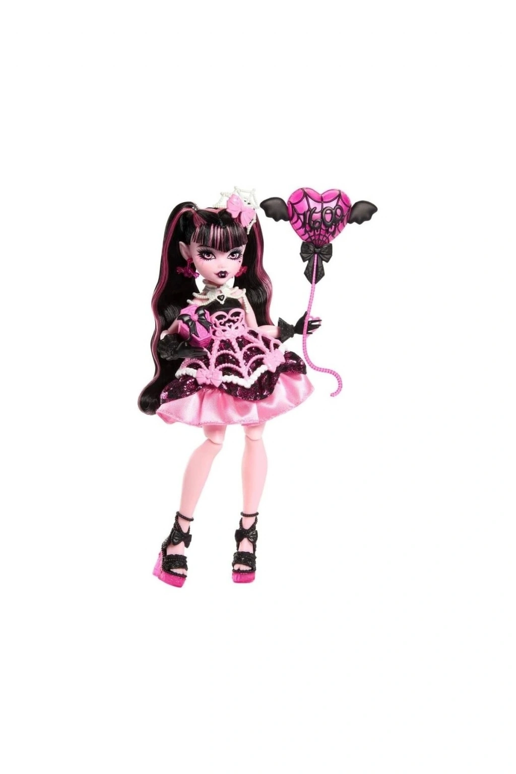 Draculaura, bir Doğum Günü partisi düzenliyor. Monster High bebekler, yüzyılın en ürpertastik kutlamasına davetli! Bebeğin 1600. yaş gününü, bu özel güne yaraşır muhteşem bir partiyle kutlamalarına yardım et. Doğum Günü bebeklerden her biri muhteşem görünür ve balon, davetiye, doğum günü kartı ve hediye gibi temaya uygun parçalar ile birlikte gelir. Çeşitli sevimli aksesuarlar sayesinde bu partide eğlencenin sınırı yok! Her biri ayrı olarak satılır ve stoklarla sınırlıdır. Bebekler tek başına ayakta duramaz. Renkler ve süslemeler çeşitlilik gösterebilir.