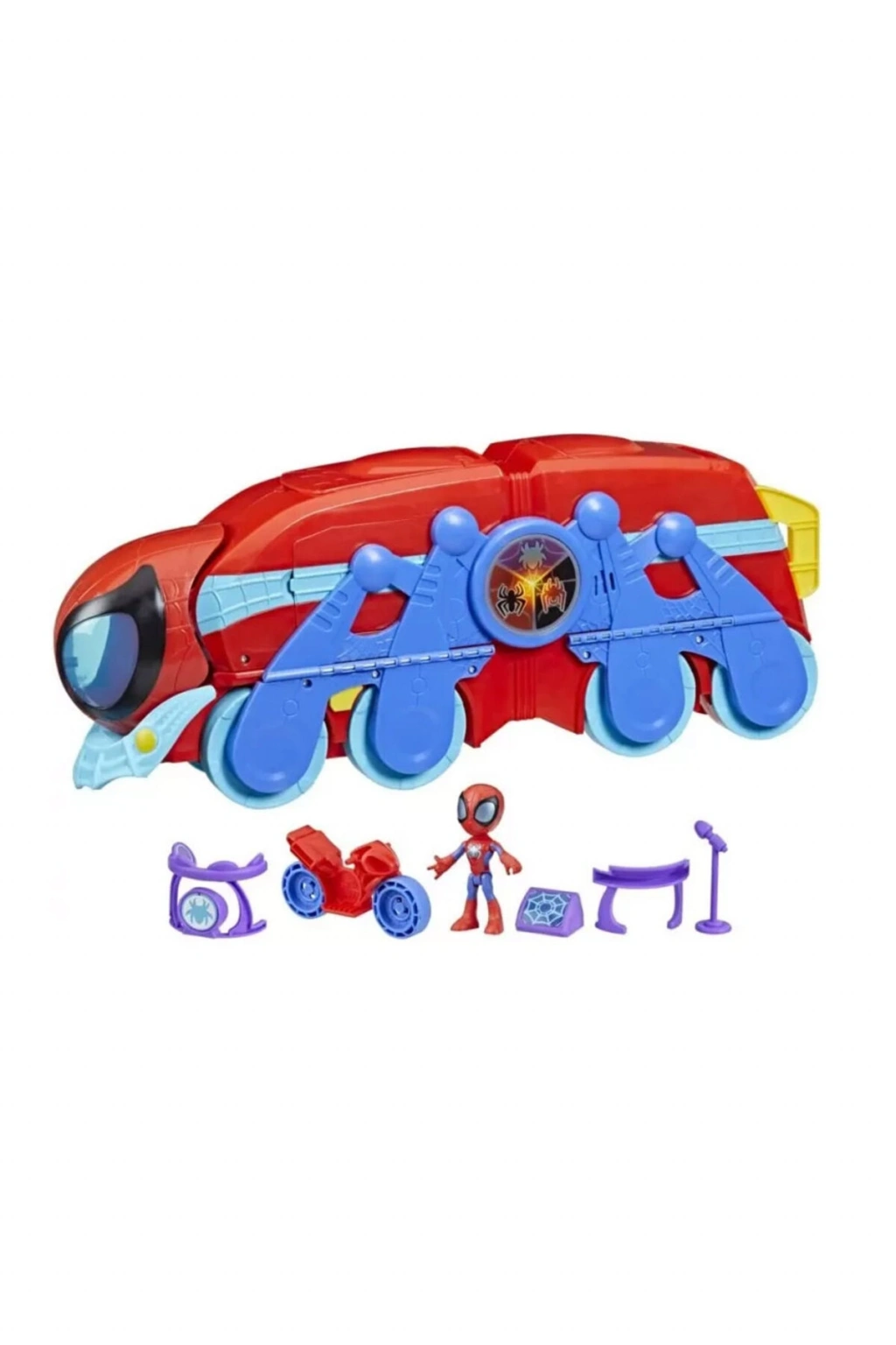 Spidey Ürün Özellikleri Heyecan verici Spidey ve Muhteşem Arkadaşları Spider Crawl-R HQ oyun setiyle ağ çıkışı!; Işıkları ve sesleri olan bu 2'si 1 arada Süper Kahraman oyun seti, büyük ölçekli bir tekerlekli araçtan 2 fit yüksekliğinde bir HQ kulesine dönüşür!; Oyun seti kule modundayken çocuklar komuta merkezinde görev planlamayı hayal edebilir, birlikte verilen alet aksesuarlarını kullanarak hayali bir gösteri sahneleyebilir, ağ kolunda sallanabilir ve daha fazlasını yapabilir!; Rampayı dışarı çekin ve Spidey aksiyon figürü birlikte verilen motosikletle hızlansın!; Hem araç modunda hem de oyun seti modunda, okul öncesi çocuklar sorun çıkaranları yoldan çıkarmak için ağ tamponunu çıkarabilir!; Okul öncesi Marvel şovundan ilham alan ışıklar, sesler ve ifadelerle 3 yaş ve üzeri çocuklar, bu 2'si 1 arada Team Spider merkez oyun setiyle sansasyonel maceralar hayal etmeye bayılacak.; TEAM SPIDEY MERKEZİ OYUN SETİ | Bu heyecan verici 2'si 1 arada mobil Karargah oyun seti, büyük ölçekli bir yuvarlanan araçtan 2 fit uzunluğunda, çok katlı, ışıklı ve sesli bir Karargah kulesine dönüşür!; YOLLANAN ARAÇ MODU | Araç modunda, bu Örümcek ve Muhteşem Arkadaşları oyuncağı 22 inç uzunluğundadır ve kokpitte 3 aksiyon figürü için yer vardır. (Örümcek figürü dahildir. Diğerleri ayrı satılır.); KARAR KULESİ MODU | Basit bir dönüşümle çocuklar 6 metrelik bir HQ kulesine girerek Spidey'nin motosikleti için bir rampa, ağ tuzağı, sahne, komuta merkezi ortaya çıkarabilir. , ve sallamak için bir ağ kolu.; IŞIKLAR VE SESLER | Bu Örümcek ve Muhteşem Arkadaşları ana merkez oyun seti ışıklandırılır ve okul öncesi Marvel şovundan ilham alan 24 ses ve cümle içerir.; ÖRÜMCEK AKSİYON FİGÜRÜ, MOTOSİKLET VE AKSESUARLAR | Oyun seti, poz veren Örümcek figürü, figürün gerçekten binebileceği motosiklet ve çocukların sallanıyormuş gibi yapması için 3 müzikli aksesuar parçası içerir.; Dönüştürücü araç oyun seti, aksiyon figürü, motosiklet ve 3 aksesuar içerir | 3 adet AAA pil gerektirir (dahildir).; Yaş Grubu | +3 Yaş.;