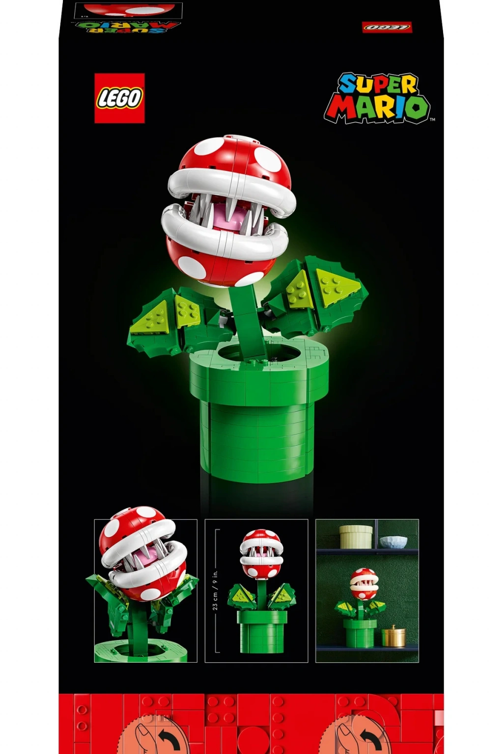 Super Mario™ dünyasından Piranha Plant’i LEGO® tarzında canlandırın! Bir borudan dışarı doğru 'büyüyen' düşmanı oluşturun ve başını, ağzını, sapını ve yapraklarını hareket ettirerek efsane pozlar verdirin. Bu eğlenceli model, evinizde veya ofisinizde sergilendiğinde harika görünecektir. Bu arada, setteki madeni para parçalarına dikkat edin. "Bunlar ne için?" dediğinizi duyuyoruz. Piranha Plant’i inşa edin ve öğrenin!