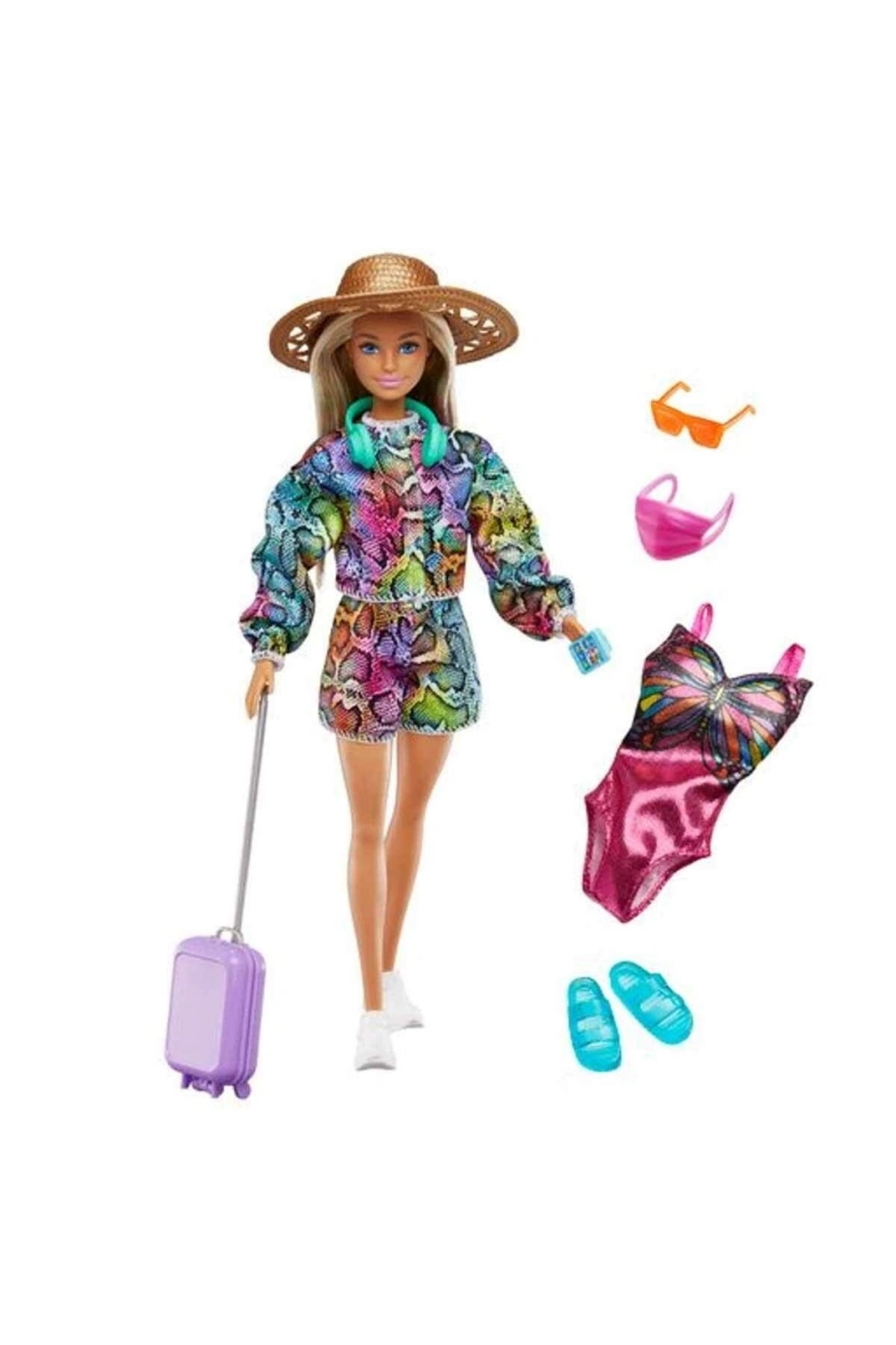 Şık seyahat kıyafetleri, sarı saçları ve aksesuarlarıyla maceraya daima hazır Barbie, hayalleri süsleyen tatil temalı hikayelere ilham verir. Yılan derisi baskılı şık üst ve şorttan oluşan rahat eşofman takımı ve seyahat stilini tamamlayan rahat terlikleriyle Barbie yolculuğa hazır. Şirin bir bavul, kulaklık, yüz maskesi ve akıllı telefondan oluşan aksesuarlar, mükemmel bir seyahatin olmazsa olmazlarıdır. Plaj veya havuz zamanı geldiğinde Barbie ışıltılı kelebek baskılı mayosu, şapkası, şık terlikleri, güneş gözlüğü ve güneş kremiyle güneşin tadını çıkarmaya hazırdır. Çocuklar sınırsız hikaye anlatımı ve oyun seçeneklerini çok sevecek. Özellikle seyahatleri, tatilleri ve gezmeyi çok seven 3-7 yaş arası çocuklar için harika bir hediyedir. Ürün ölçüleri: 16,9 x 14,9 x 6,9 cm Ürün ağırlığı: 0,65 kg