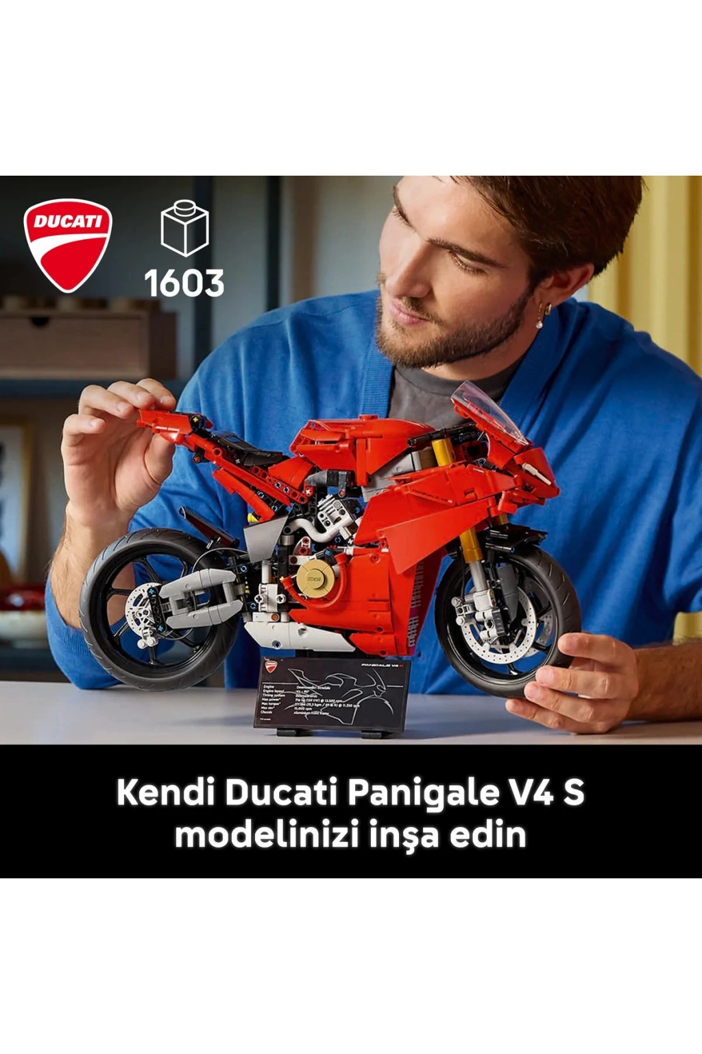 ® Technic DucatiPanigale V4 S Motosiklet 42202 - Yetişkinler için Model Yapım Seti (1603P)
