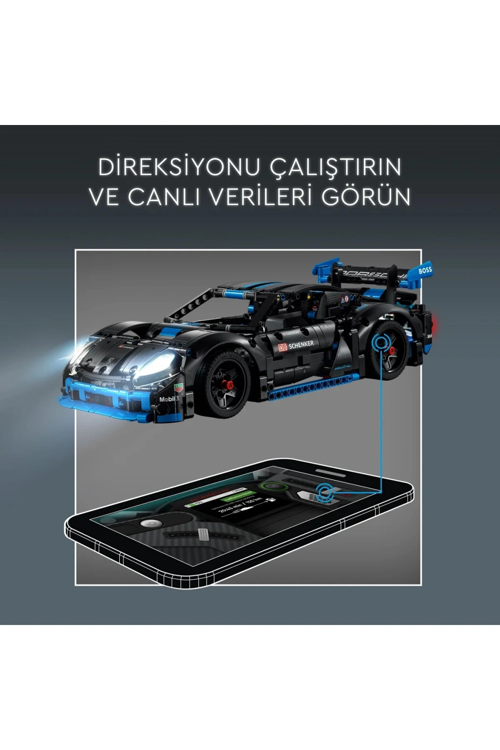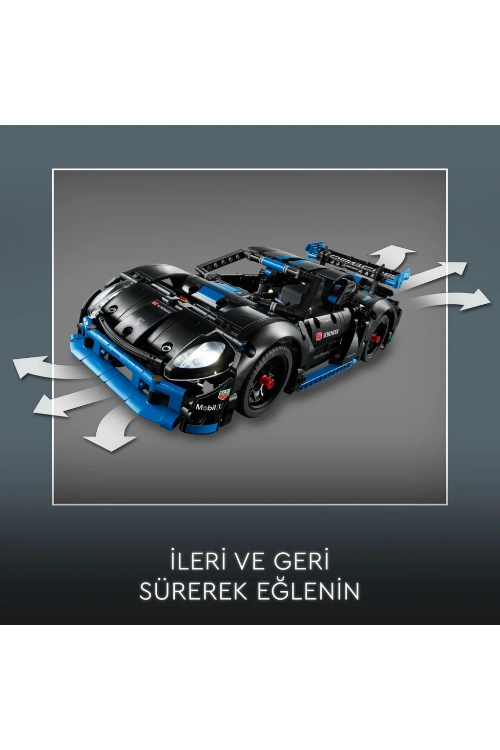 Porsche GT4 e-Performance yarış arabası, motor dünyasında elektrikli inovasyona öncülük ediyor. LEGO® Technic CONTROL+ serisindeki (Ağustos 2024 itibarıyla) en hızlı arabanın size ait uzaktan kumandalı versiyonunu inşa ederken eğlenin. İleri geri sürerken bu güçlü arabanın neler yapabileceğini görün. Ön ve arka lambalarla yolunuzu aydınlatın. Sonra kapıları açarak içini hayranlıkla inceleyin.