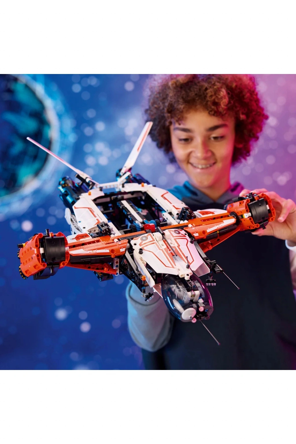 Uzay meraklıları, uzay uçağı oyuncaklarını seven 10 yaş ve üzeri çocuklar için LEGO® Technic VTOL Ağır Kargo Uzay Gemisi LT81 (42181) ile unutulmaz bir yapım deneyiminin keyfini çıkarabilir.; Bu fütüristik uzay gemisi araç oyuncağı modeli, çocuklar uzak gezegenlerde kargo taşıma görevlerini oynarken merak uyandıracak pek çok özelliğe sahiptir.; Bu set, motorları döndüren, iniş takımını açıp kapatan ve mini uzay aracının olduğu kargo kapsülünü kavramak için pençeyi indiren dişliler gibi harika özelliklerle doludur.; Genç uzay tutkunlarının bu fütüristik uzay gemisiyle oynarken tutup odada uçurabilmeleri için üzerinde sapı bile vardır.; Bu set, uzay maceralarını ileri bir boyuta taşımak için özel uzay hava kilidi parçasıyla diğer uyumlu uzay temalı LEGO setlerine (ayrı satılır) bağlanabilir.; Çocuklar, LEGO Builder Uygulaması ile modelleri inşa ederken 3 boyutlu yakınlaştırıp döndürebilir, setleri kaydedebilir ve ilerlemelerini takip edebilir.; Fütüristik bir kargo uzay gemisi inşa edin 10 yaş ve üzeri genç uzay tutkunlarının, LEGO® Technic VTOL Ağır Kargo Uzay Gemisi LT81 uzay uçağı oyuncak setini inşa edip oynarken keşfedecekleri çok şey var.; Dikey kalkış ve iniş takımı Çocuklar,hayali oyunlarla farklı gezegenlerde yaşamanın ve çalışmanın olanaklarını ve zorluklarını keşfederken, iniş takımını açıp kapatabilir.; Kargoyu taşıyın Kargo kapsülüne konularak uzayan pençeyle uzay gemisinin altına atılabilen bir mini uzay aracı içerir.; Tutma sapı ve dönen motorlar Genç uzay kaşifleri sapı tutabilir, motorları döndürebilir ve farklı uçuş manevraları yaparken otomatik seviye ayarlı kokpiti hayranlıkla inceleyebilir.; Uzay temalı oyuncak Uzay seyahatine ve fütüristik oyuncak uçaklara ilgi duyan 10 yaş ve üzeri çocuklar için eğlenceli bir hediye fikridir.; Hava kilidi parçası Özel bir uzay hava kilidi parçası ile birlikte gelir, böylece çocuklar, daha fazla uzay seyahati macerası için bu modeli diğer uyumlu uzay temalı LEGO® setlerine (ayrı satılır) bağlayabilir.; Mühendisliğe giriş LEGO® Technic setleri, LEGO severleri ulaşılabilir ve gerçekçi bir şekilde mühendislik dünyasıyla tanıştıran gerçeğe uygun hareketler ve mekanizmalar içerir.; Boyutlar Bu 1365 parçalı setteki uzay gemisinin yüksekliği 19 cm, uzunluğu 52 cm, genişliği 47 cm’dir.; Parça Sayısı: 1365